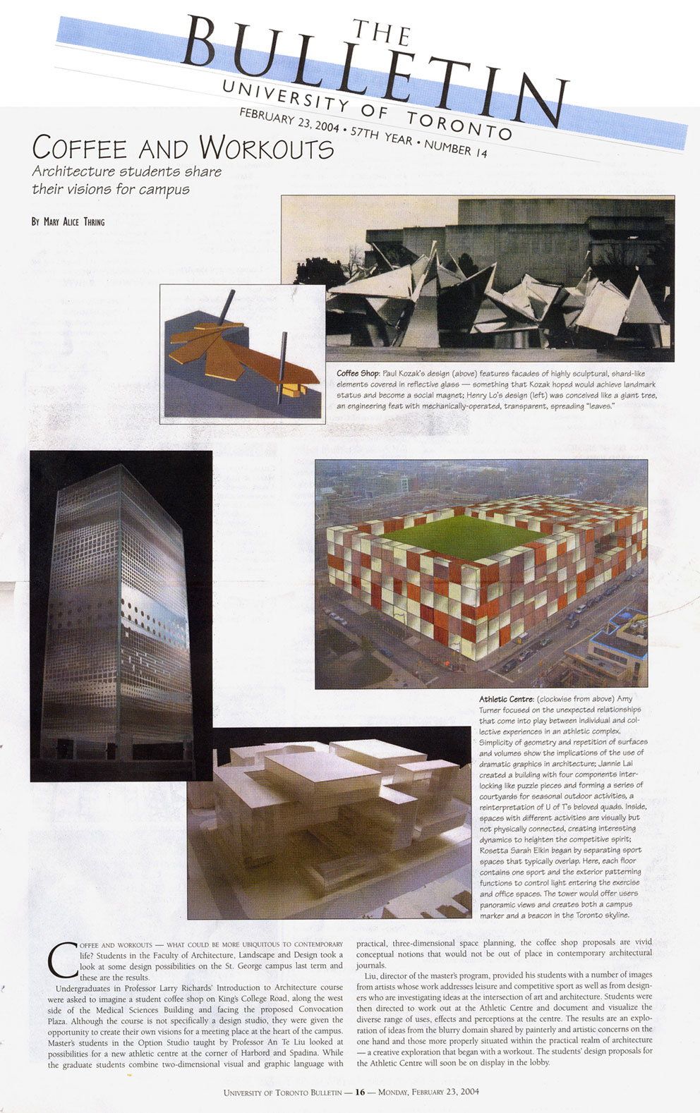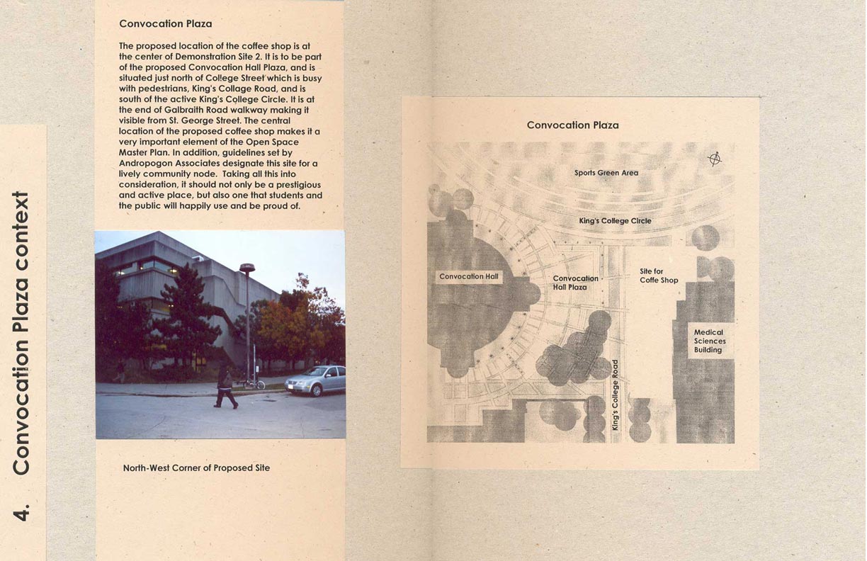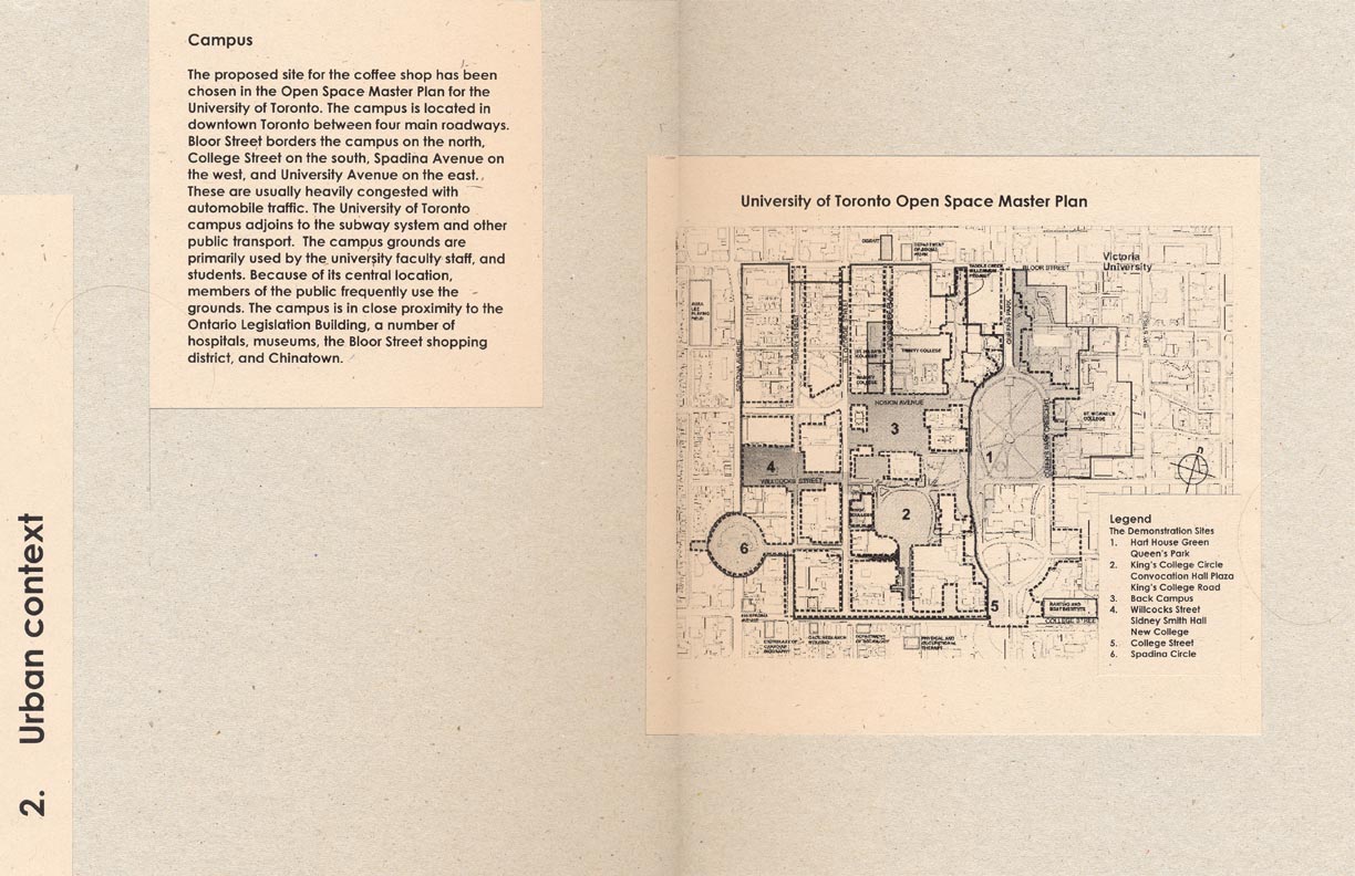 A proposal for a student coffee shop at the University of Toronto St. George Campus published in The Bulletin staff newspaper and chosen for exhibition during the Coffee Shop exhibit at the Faculty of Architecture, Landscape, and Design's Larry Wayne Richards Project Gallery