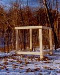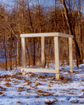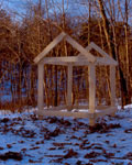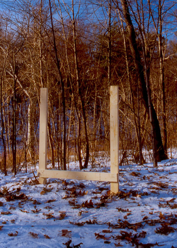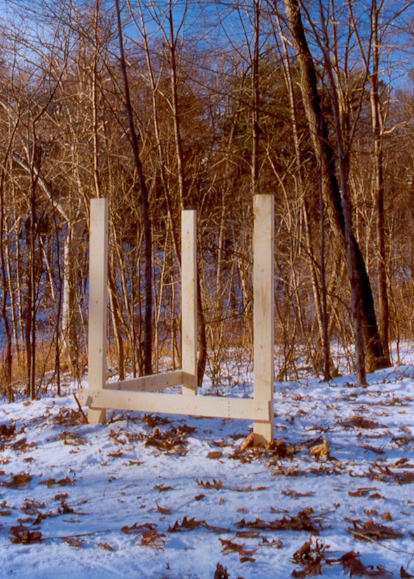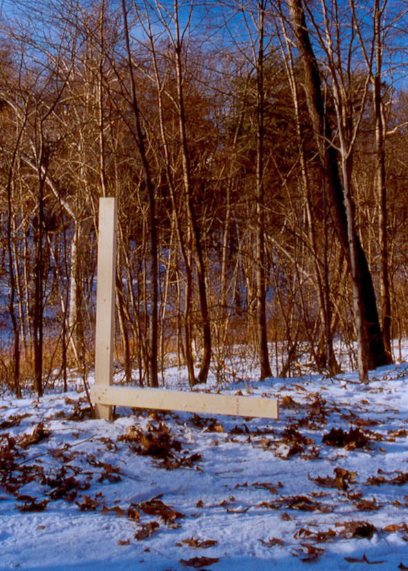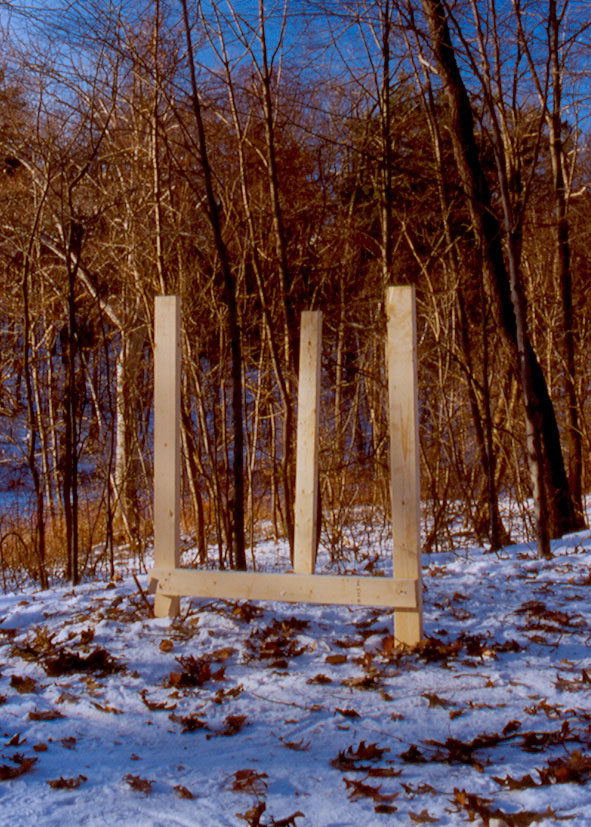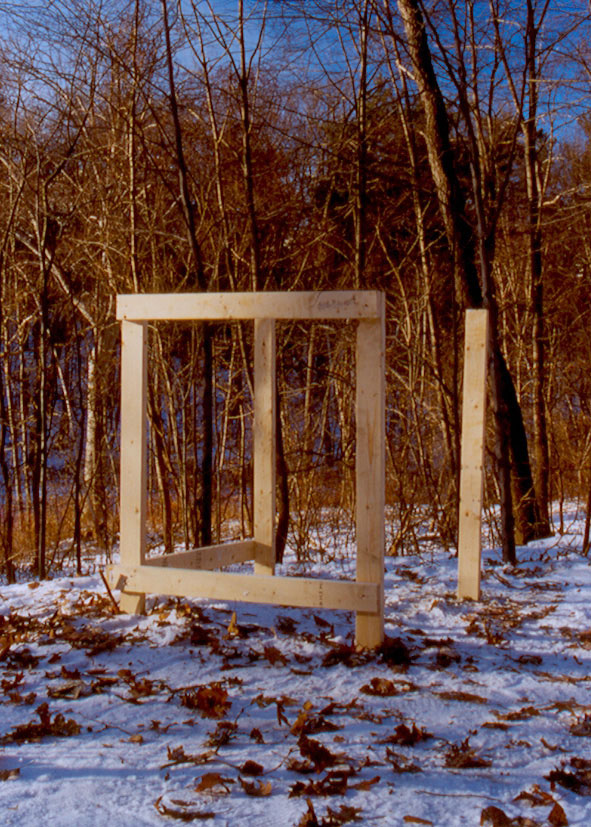 A five minute color slide show accompanied by the sound of hammering nails showing the building process of an illusionary shelter in High Park, Toronto