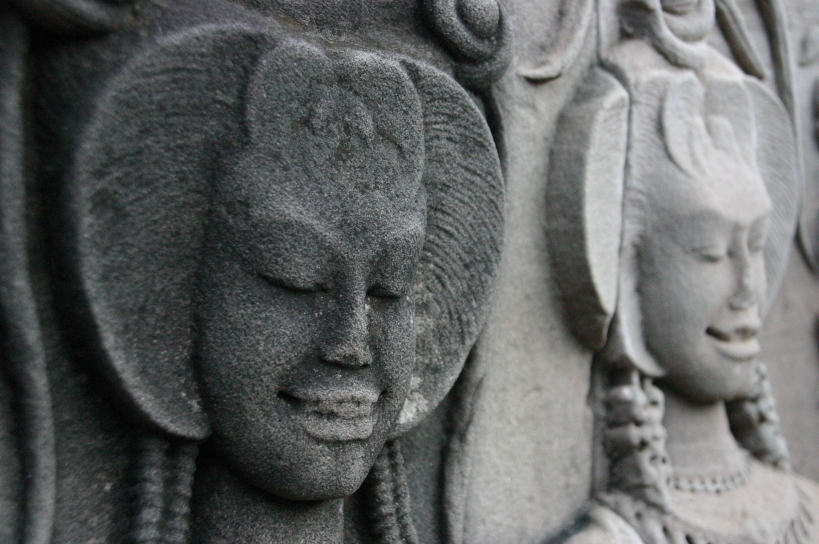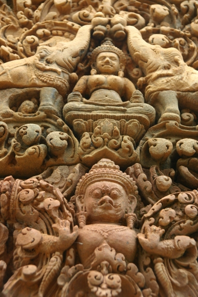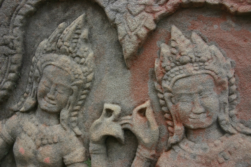 The faces that I came accross in the ancient temple ruins of Angkor Wat intrigued me. Some sculptures were in much better shape than others, as you can see from the photos, but generally one is amazed at the amount of detail that the fascades hold with the sculptures on their sides. The scenes or faces that are depicted are very interesting to look at in themselves. The place is truly rich with ancient splendour. A feast for the eyes, unfortunately too many hands as well.