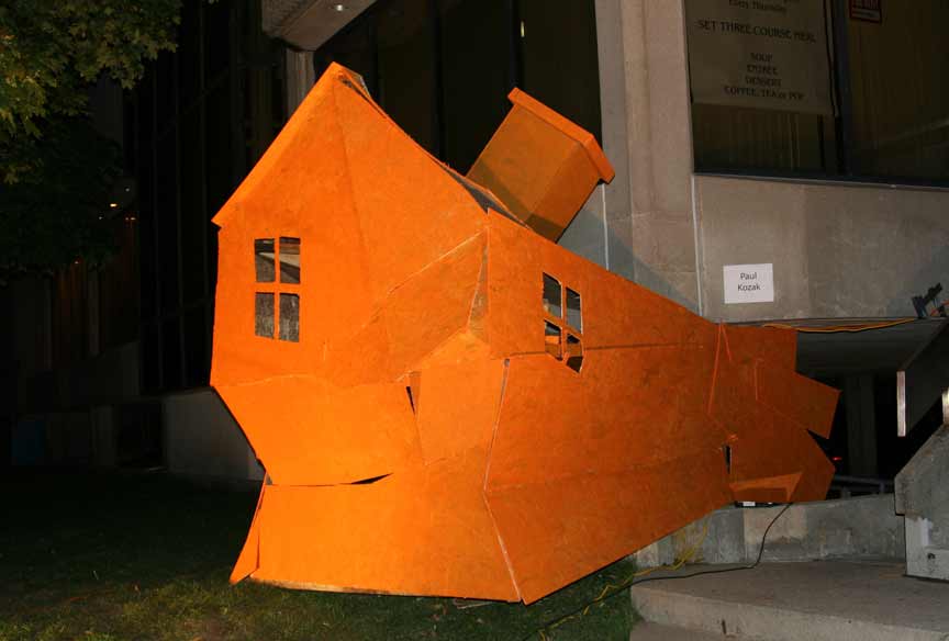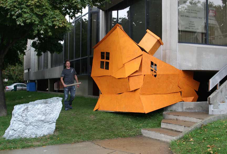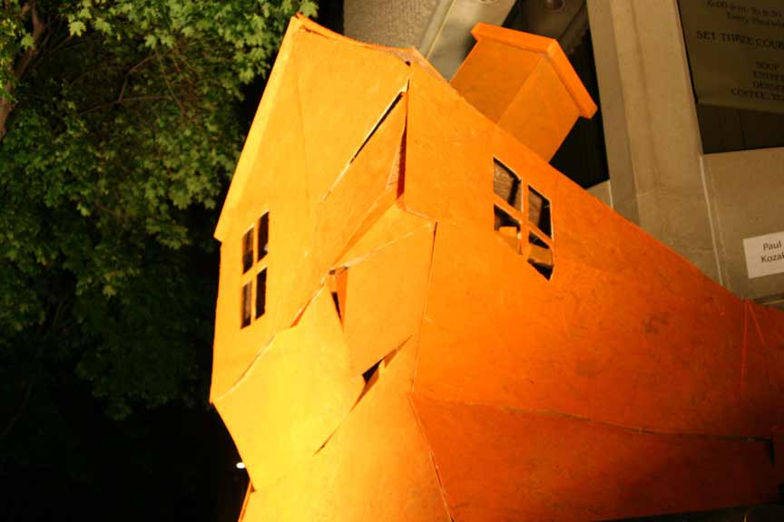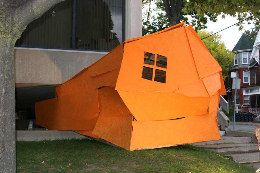 I was asked to build an installation for the “Nuit Blanche” in Toronto. The result was an Orange Crushed House. The sculpture relates to my investigations of relations between old and new architecture as well as large and small structures.